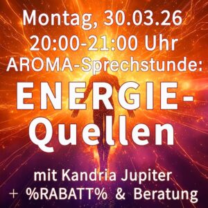 Energie steht uns unbegrenzt zur Verfügung. Dennoch fühlen sich viele energielos und erschöpft. In meiner AROMA-Sprechstunde: ENERGIE-Quellen am Montag, den 30.03.26, um 20:00 Uhr spreche ich über: