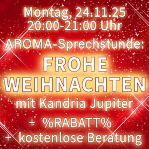 Alle, die sich „FROHE“ Weihnachten wĂŒnschen, sollten am kommenden Montag, den 24.11., von 20:00-21:00 Uhr an meiner AROMA-Sprechstunde teilnehmen. Darum geht es diesmal: