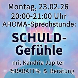 In meiner AROMA-Sprechstunde: Schuldgefühle, am Montag, den 23.02.26, um 20:00 Uhr spreche ich über die folgenden Themen: